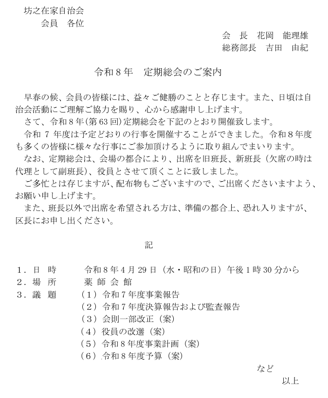 なお、来月の地域清掃は、9月14日(日)午前10時からです。ご協力をお願いいたします。